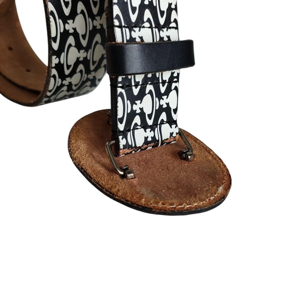 Vivienne Westwood ヴィヴィアンウエストウッド オーブプリント レザーベルト ブラック×ホワイト レディース 古着
