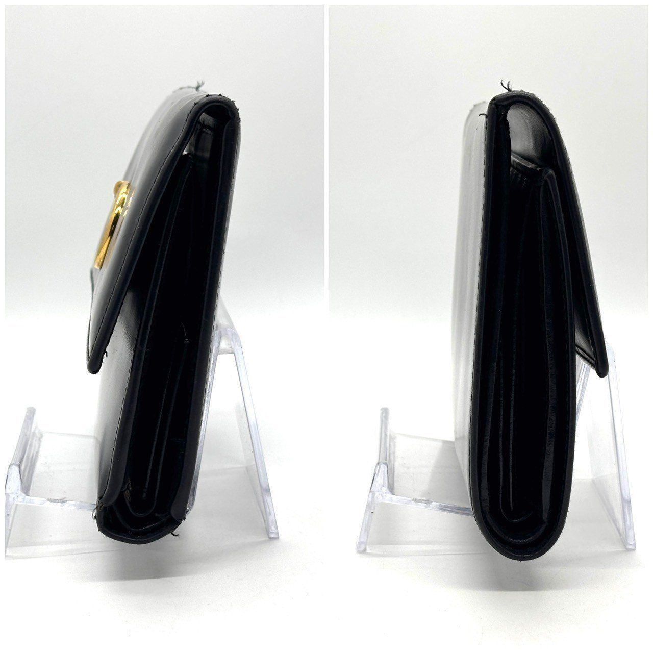 カルティエらしい重厚感あるブラックレザーにゴールドモチーフが映える3つ折り財布。