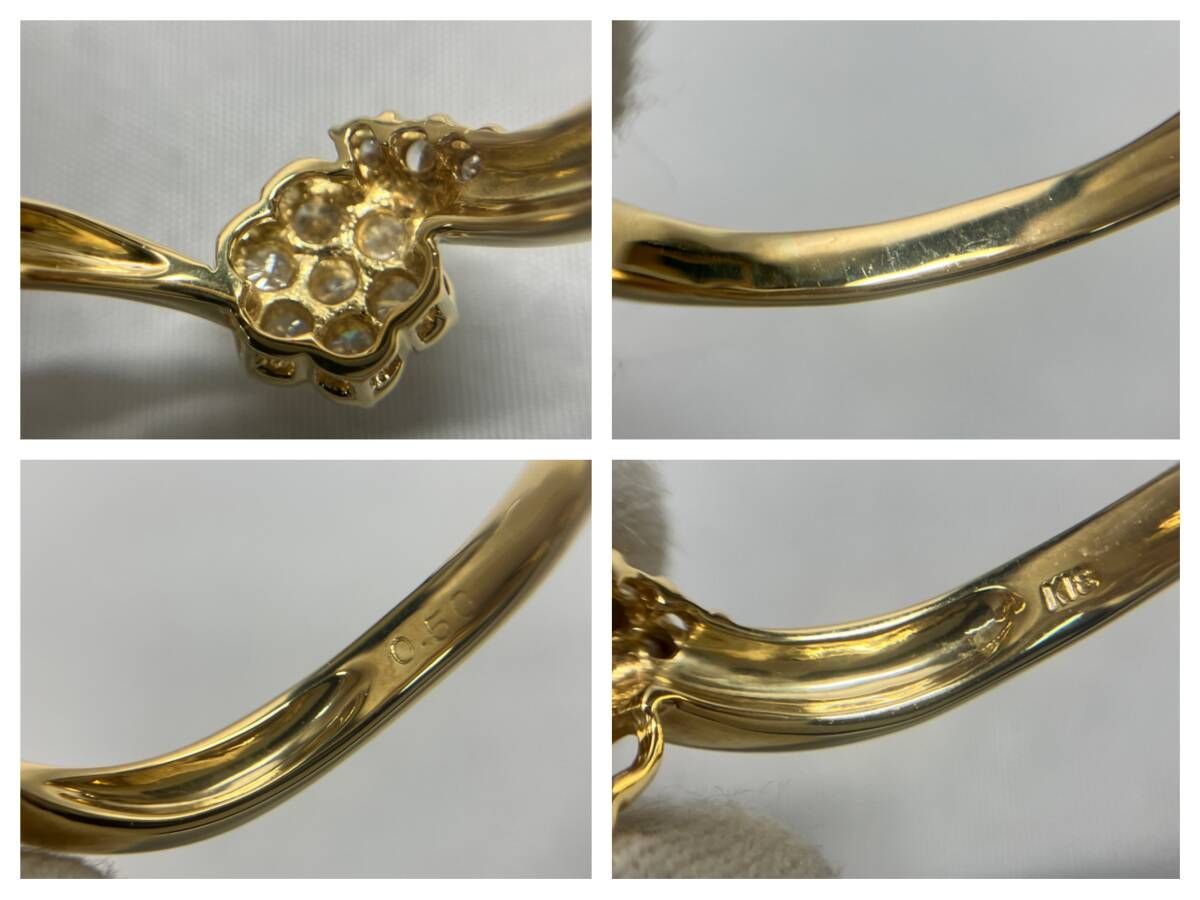 K 18 天然ダイヤモンド 0.50の刻印あり リング 20号 4.8 g ソーティング付 フラワーモチーフ クラスターセッティング ひねり腕