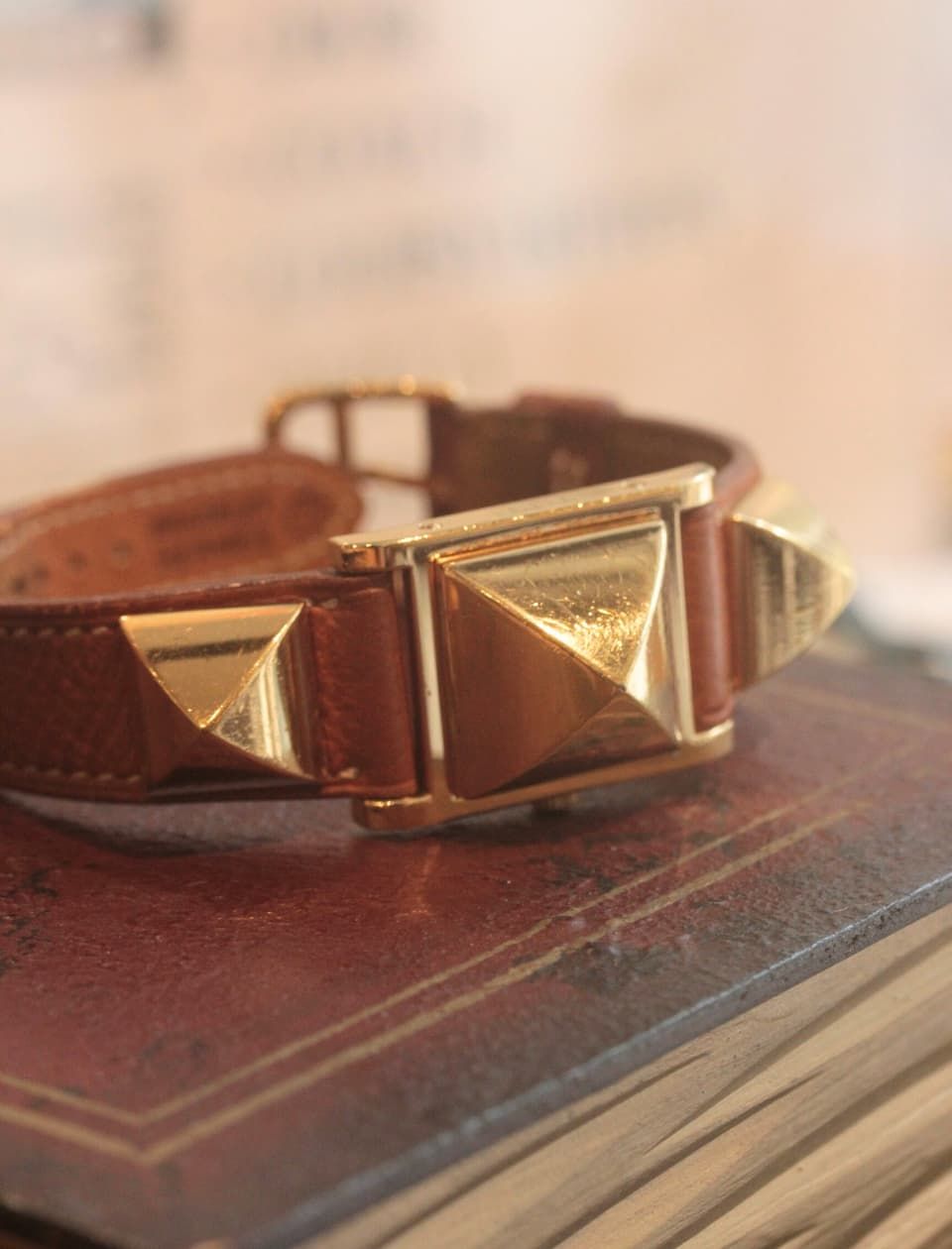 Hermès Médor – A Distinctive and Iconic Design At first glance, it appears to be a bracelet, but the pyramid-shaped cover opens to reveal the watch dial—a unique and stylish creation by Hermès.