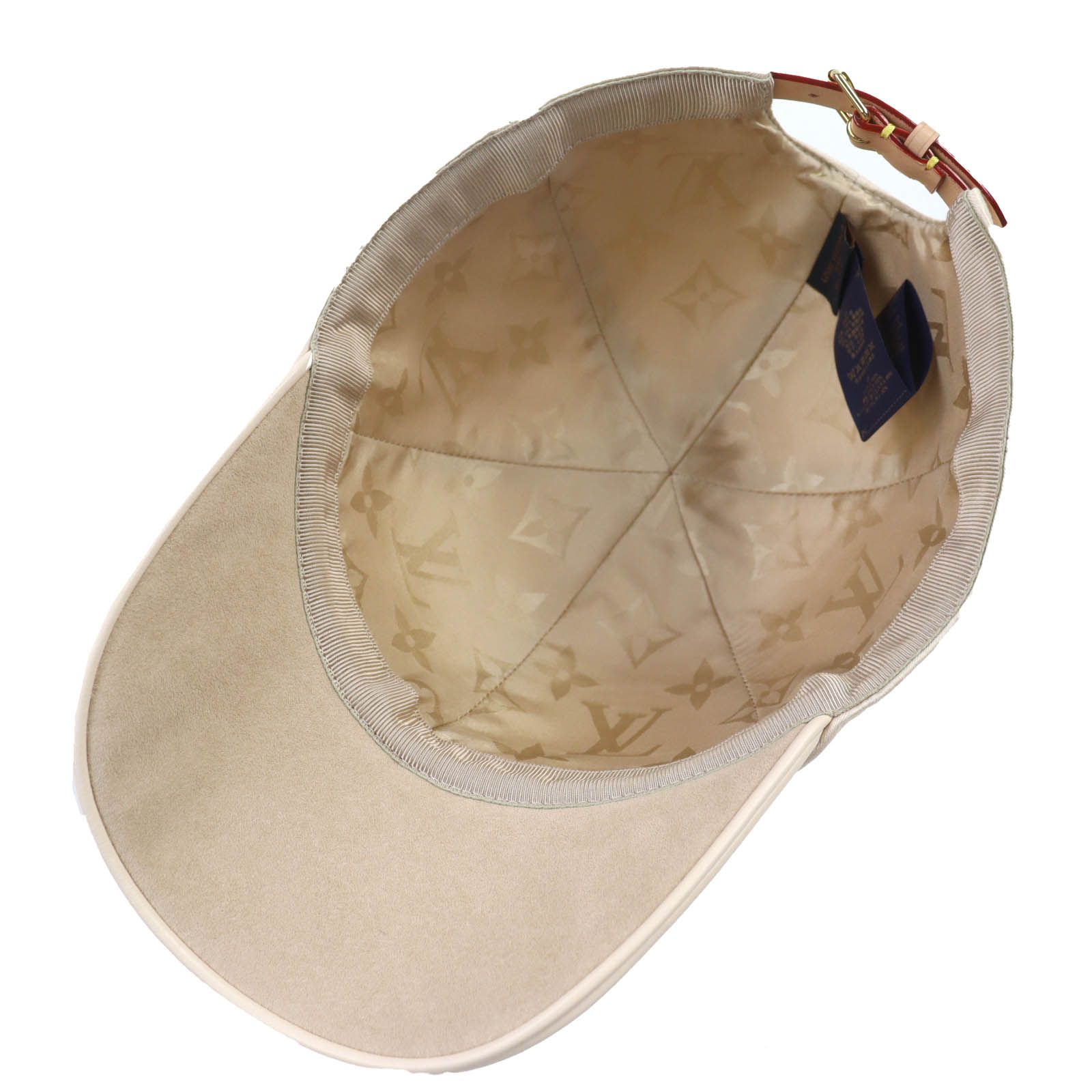 LOUIS VUITTON ルイヴィトン M 7087 L LV ファースト コットン100% 裏地シルク100% モノグラム レザー使い キャップ ベージュ 箱 保存袋付き イタリア製 レディース
