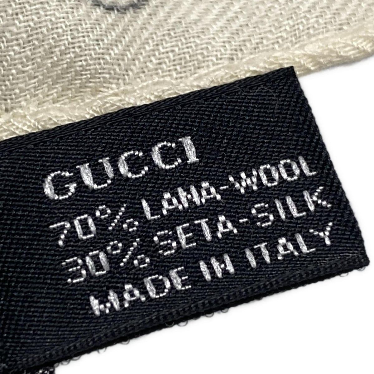 GUCCI グッチ ストール ショール - アイボリー×黒 GG柄 ウール シルク