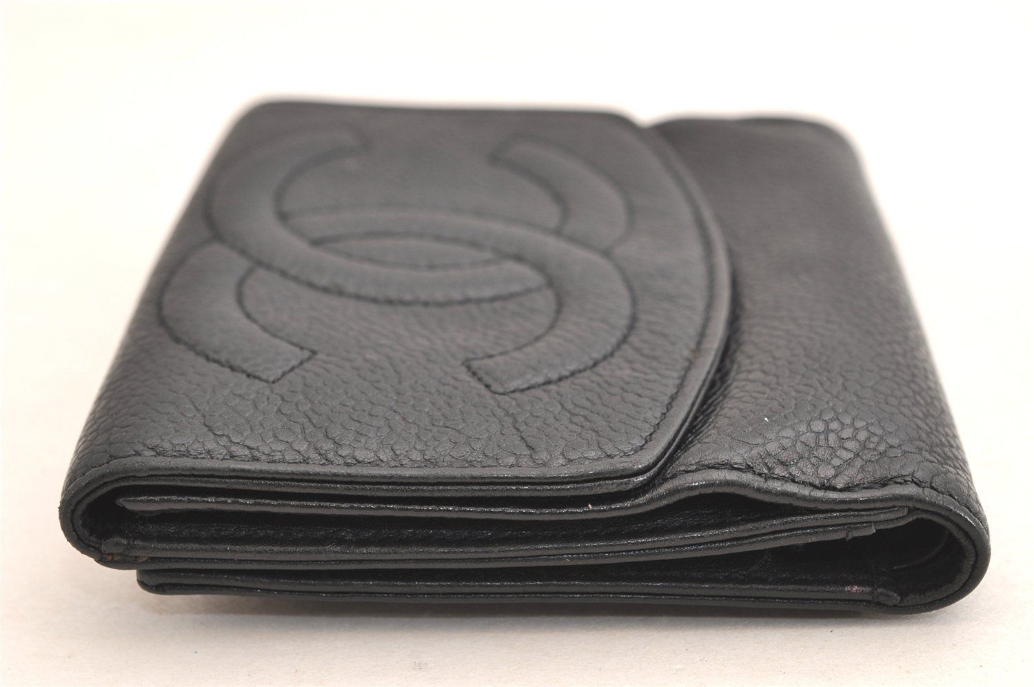 CHANEL シャネル キャビアスキン ヴィンテージ CC ロゴ 二つ折り財布 財布 ブラック 2820 N