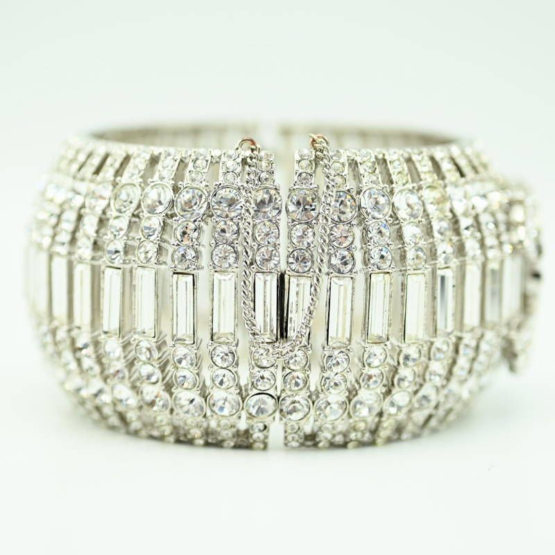CHANEL シャネル ココマーク GP ラインストーン バングル ブレスレット 03 A シルバー M 10-k 055
