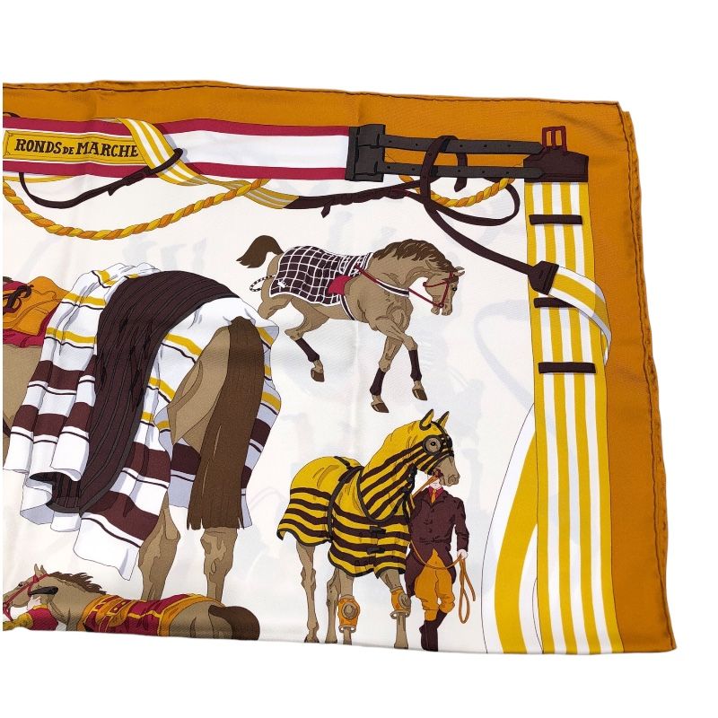 エルメス HERMES カレ90 RONDS DE MARCHE ブラウン シルク レディース スカーフ