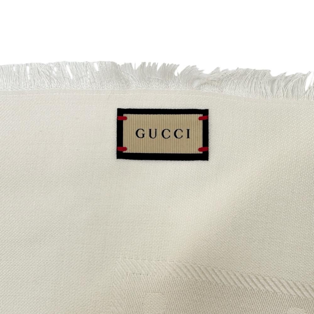 GUCCI グッチ 663671 ジャガード ショール シルク ウール アイボリー レディース GD