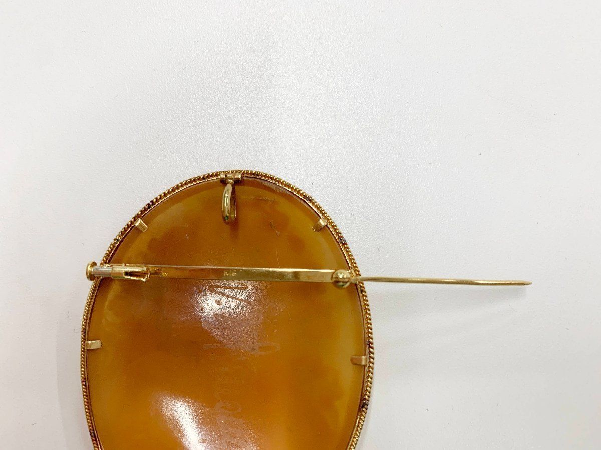 ヴィンテージ カメオ ブローチ シェル 18 K 重さ14.9 g レトロ ペンダントトップ 2 Way 浮き彫り 縦6 cm 横4.7 貴婦人 女性肖像 他400
