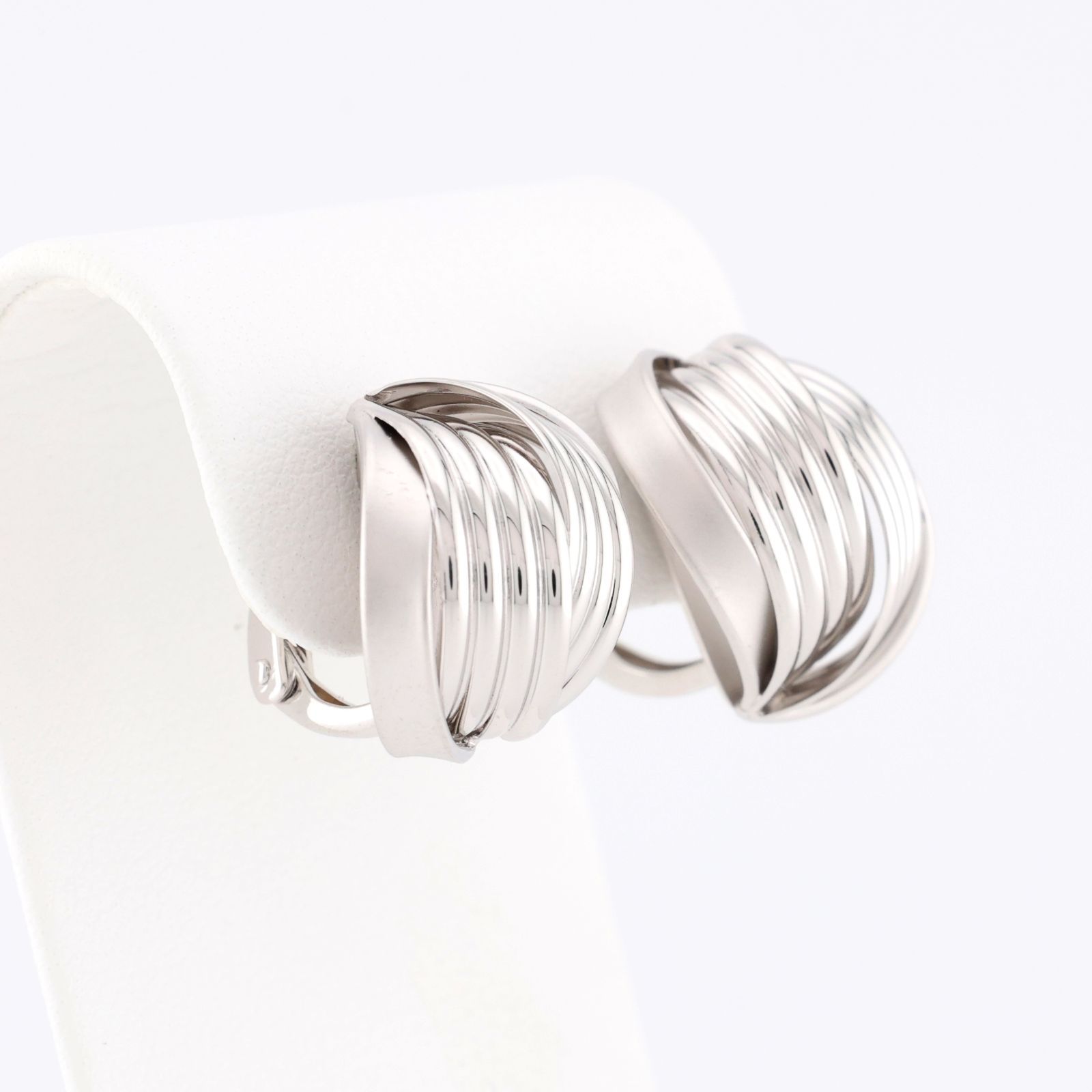 「ピアリング」はピアスのように見えるイヤリングです。つける位置や耳たぶの厚さを選ばず使えるので、耳が痛くなりにくく装着も簡単です。K14WGホワイトゴールド地金を贅沢に使用し、高級感と存在感が抜群です。艶消しと艶出しのコントラストで作られた曲線が美しい、女性らしい優しいデザインです。