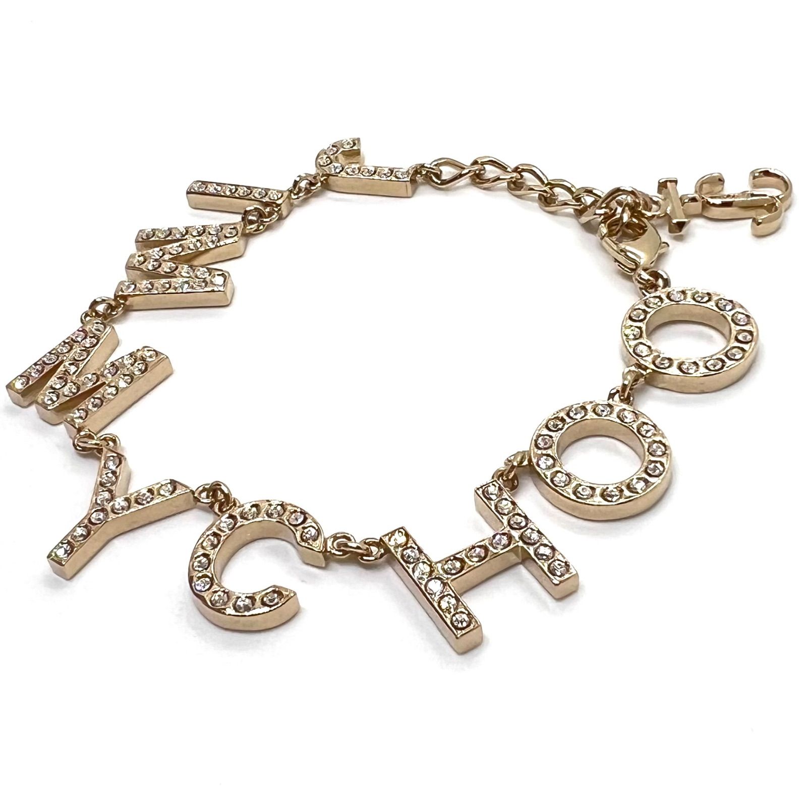 美品★ JIMMY CHOO ジミーチュウ ブレスレット ロゴ ラインストーン ゴールド 現行 30181