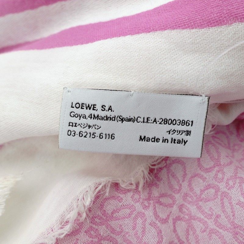 ロエベ LOEWE ストール アナグラム ピンク×ホワイト 大判 コットン100% スカーフ 7-9-466