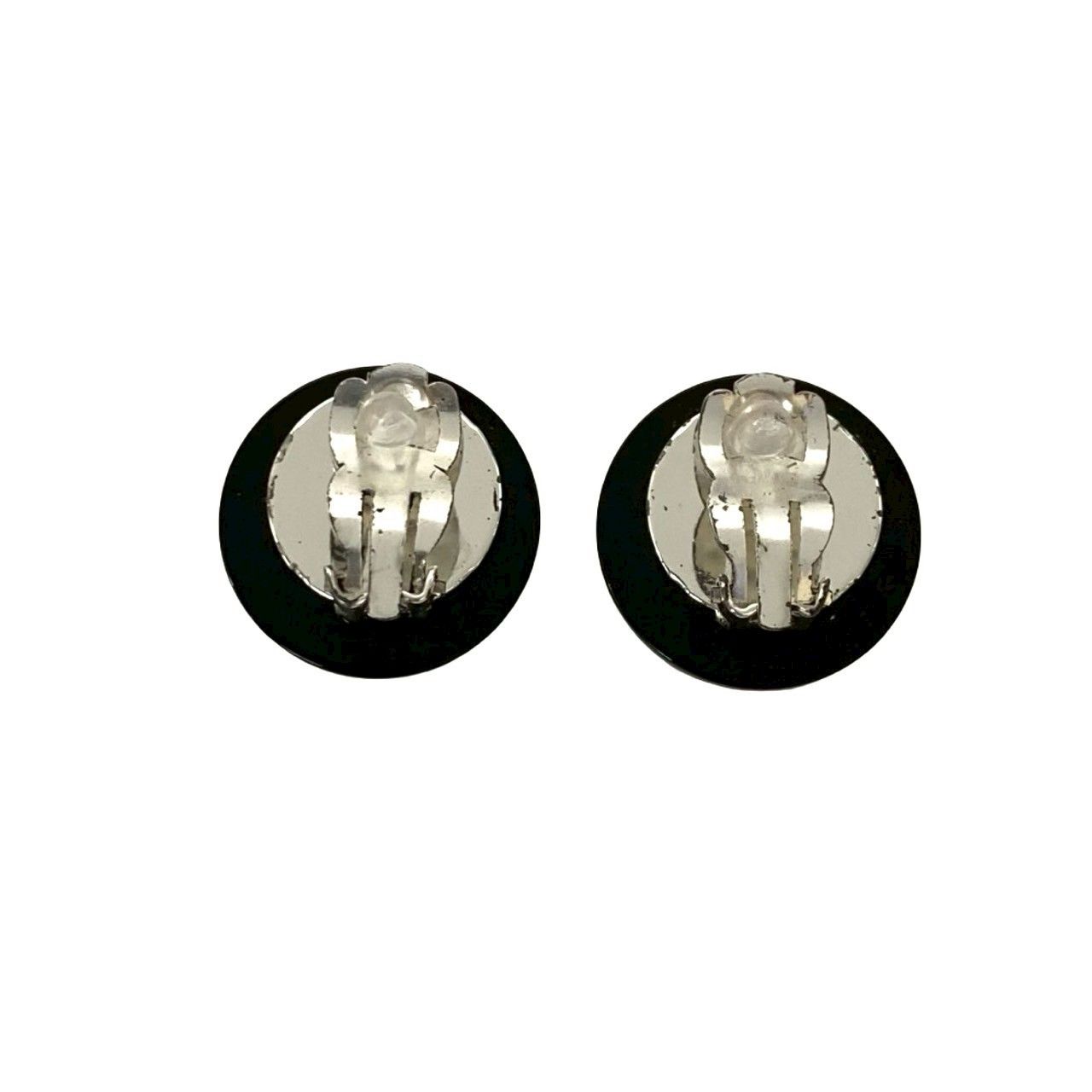 き コメあり 96 A CHANEL シャネル ヴィンテージ ココマーク モチーフ プラスチック メッキ イヤリング ブラック 35711