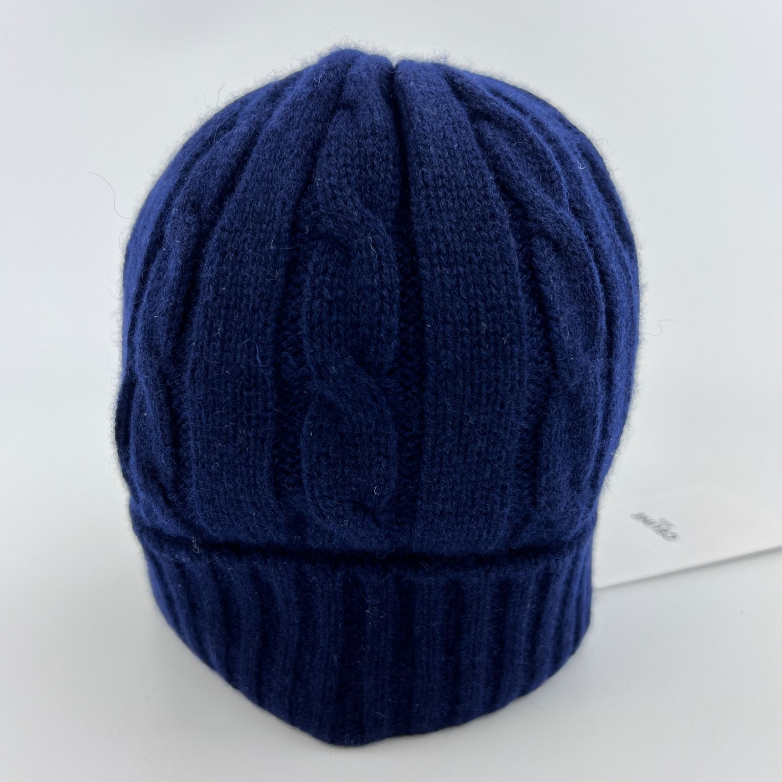 CELINE セリーヌ トリオンフ ニットキャップ ニット帽 TU カシミヤ ナイロン ポリウレタン ネイビー ヴィンテージ レディース HIBUOCHI VINTAGE
