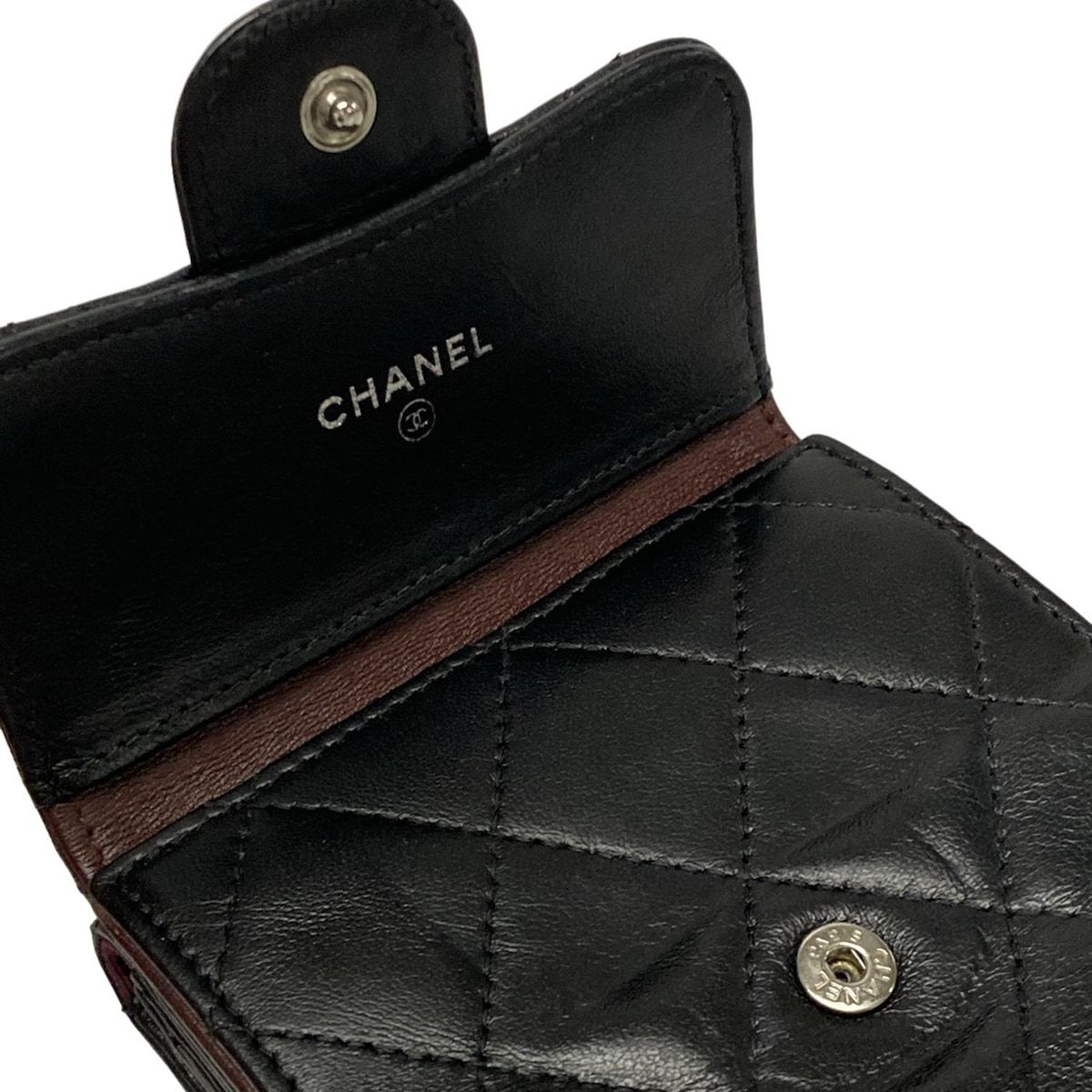 CHANEL シャネル Wホック財布 マトラッセ 黒 ラムスキン