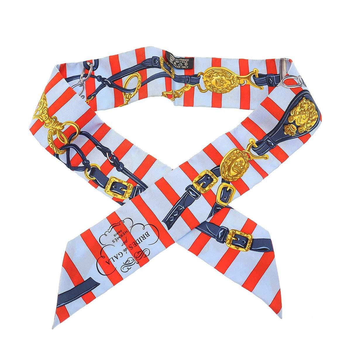HERMES エルメス BRIDES DE GALA 式典用馬勒 ボーダーシルクナロースカーフ ブルー レッド