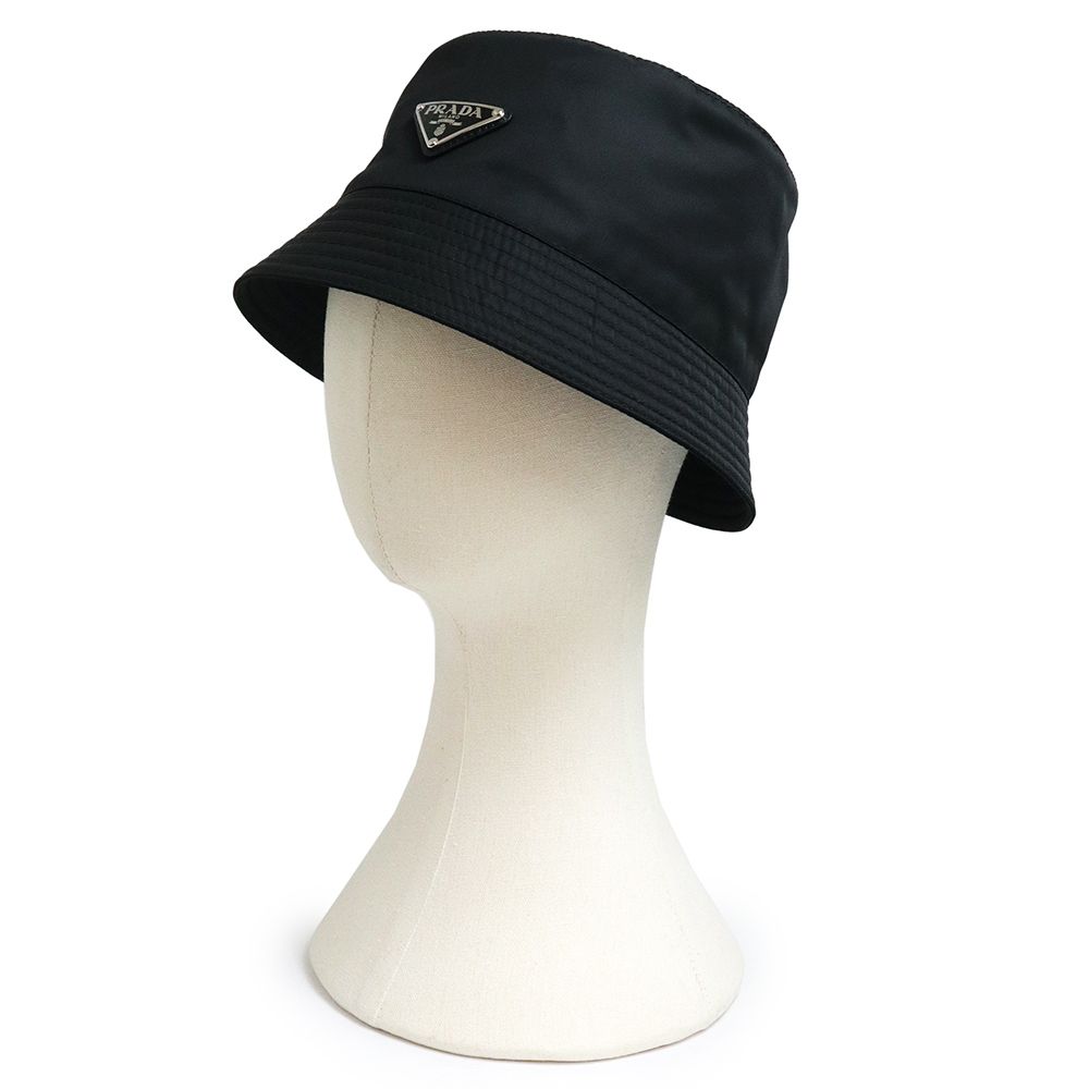 プラダ トライアングル 三角ロゴプレート Re-Nylon バケット ハット 帽子 Mサイズ テスート ナイロン ネロ ブラック 黒 シルバー金具 1 HC 137 PRADA