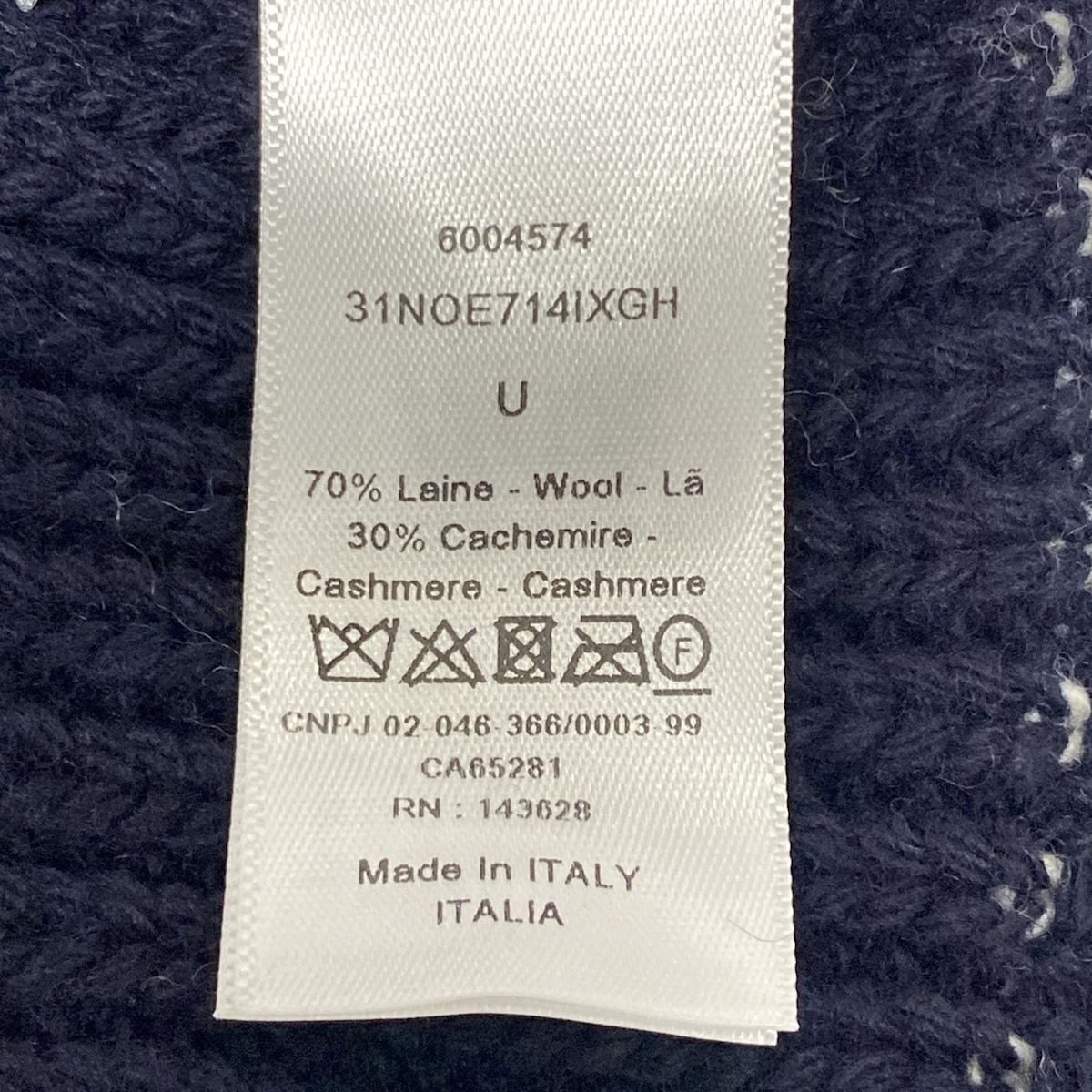 ディオール クリスチャンディオール ニット帽 U ロゴ ニットキャップ ダークネイビー×白 ウール カシミヤ