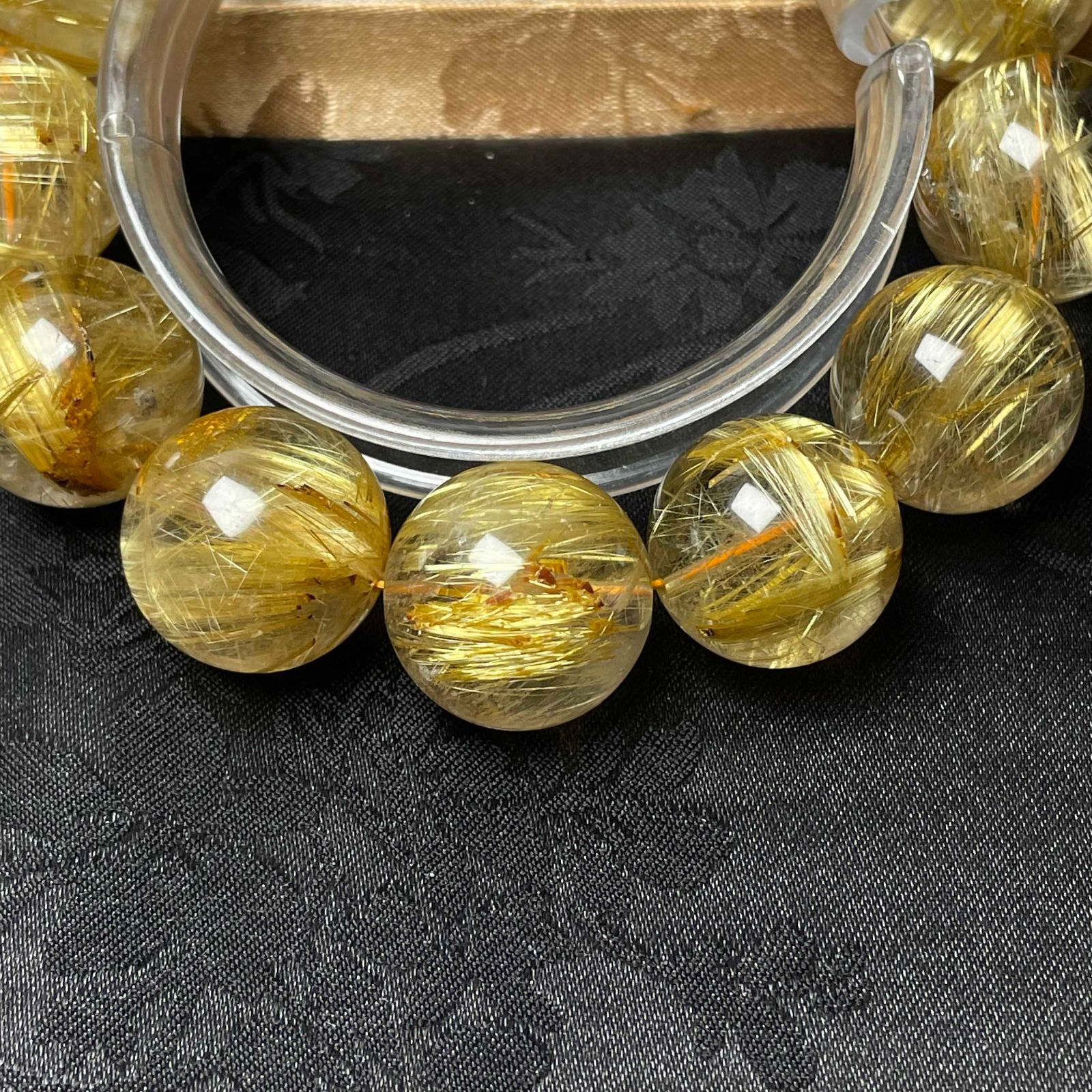 絶賛 EU製 ! 満針ルチルクォーツ ブレスレット パワーストーン 天然石 金運 お守り プレゼント 17.8-18.7 mm ZZ 1623