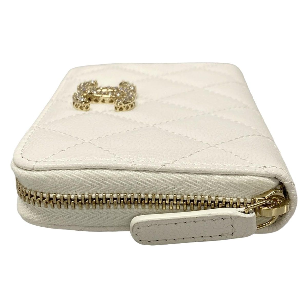 CHANEL シャネル コインケース マトラッセ AP 4560 B 12928 10601 白 ゴールド金具 ラウンドファスナー ラインストーン 2025 SS