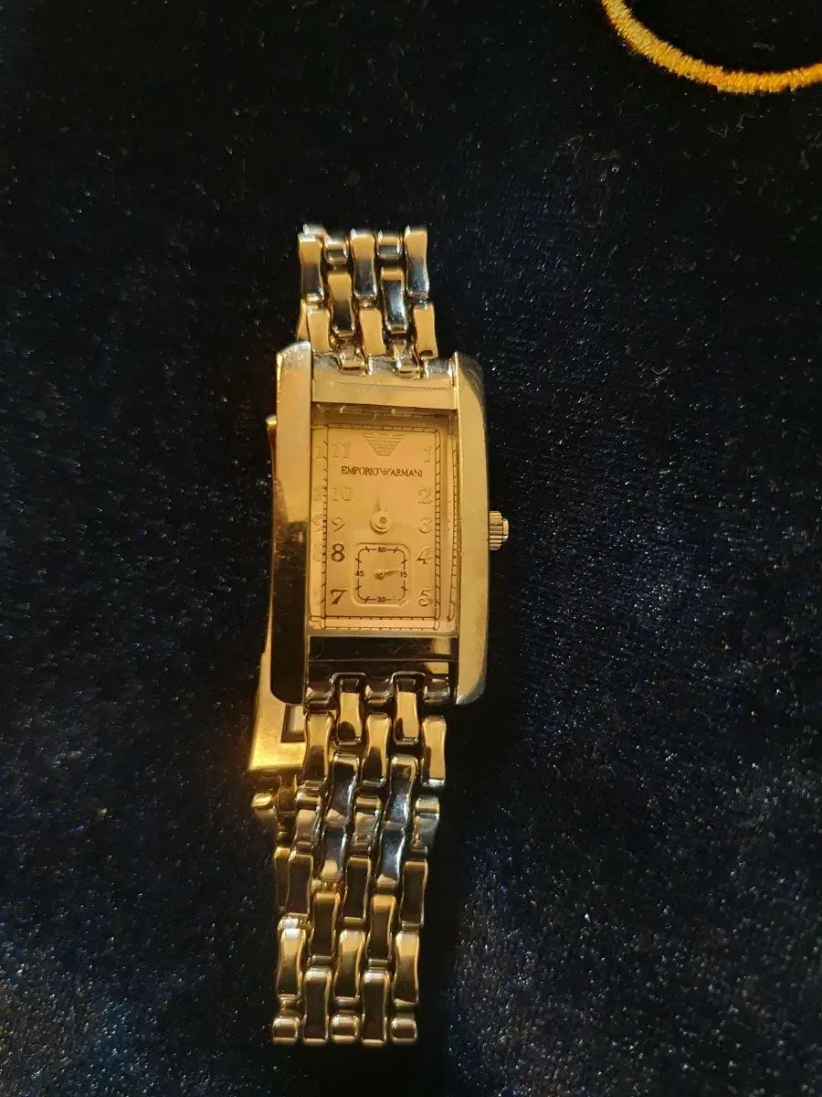 これはエンポリオアルマーニ正規品女性用時計です。この時計にはシルバーのメタルバンドと魅力的なライトピンクの四角いフレームが付いています。