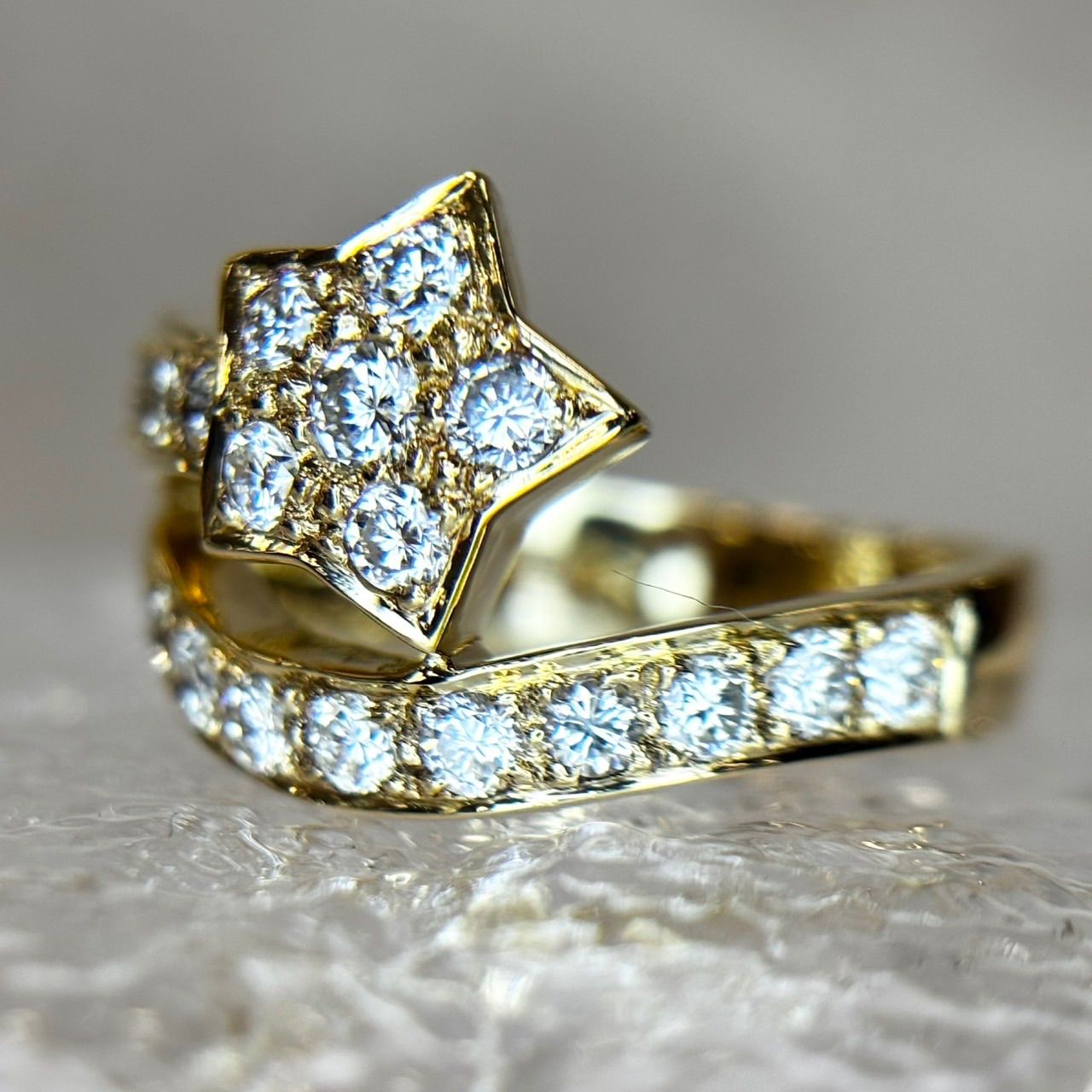 合計1.21ctの天然ダイヤモンドを贅沢にセッティングしたデザインリング。 星を象ったモチーフが印象的で、