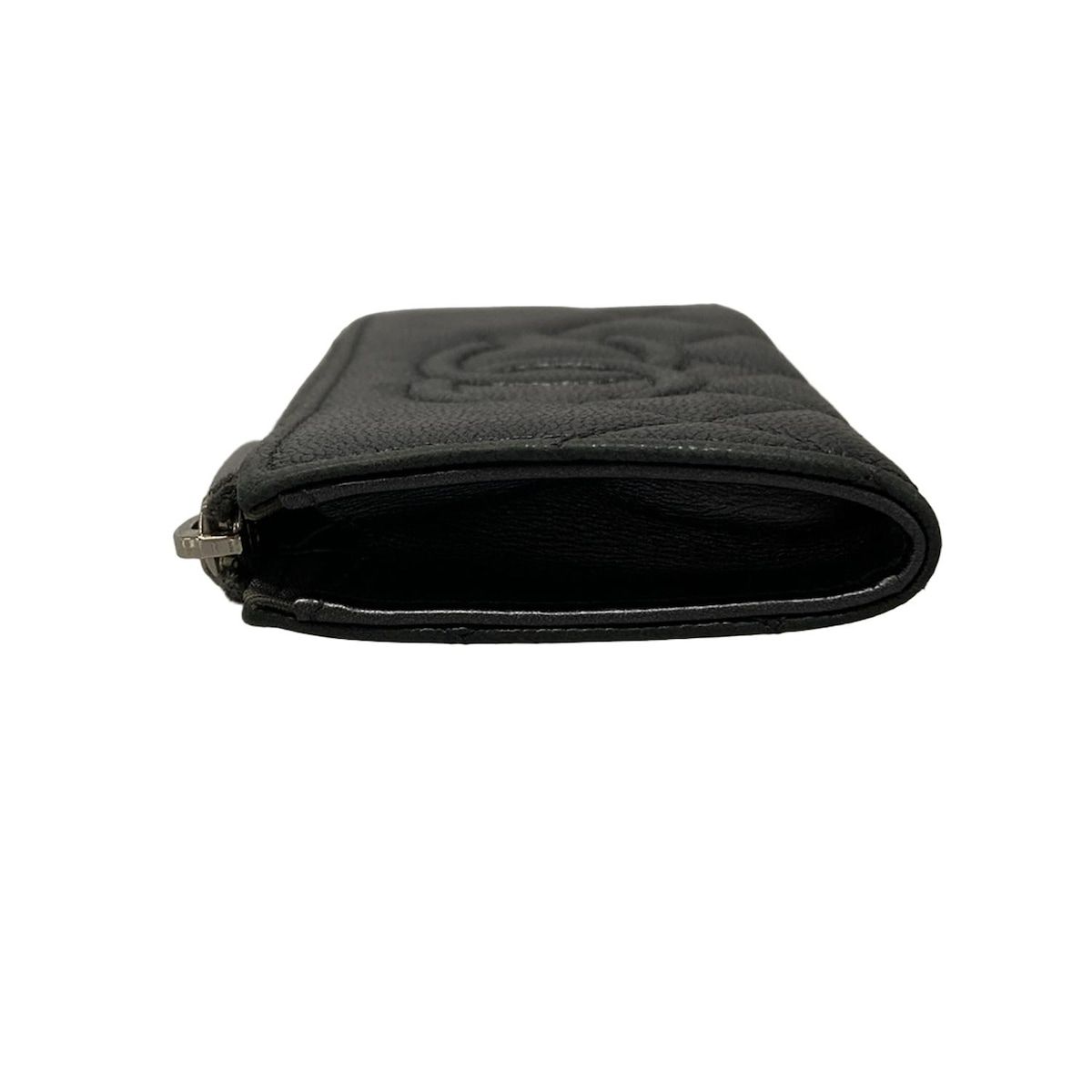 CHANEL シャネル コインケース マトラッセ ダークグレー L字ファスナー キーリング付き ココマーク シルバー金具 ラムスキン