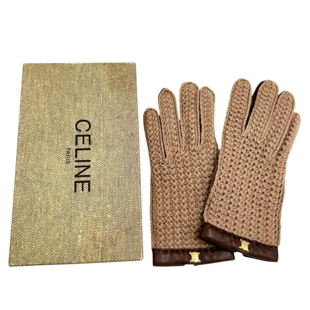 CELINE セリーヌ トリオンフ グローブ 手袋 ウール レザー ブラウン レディース GD