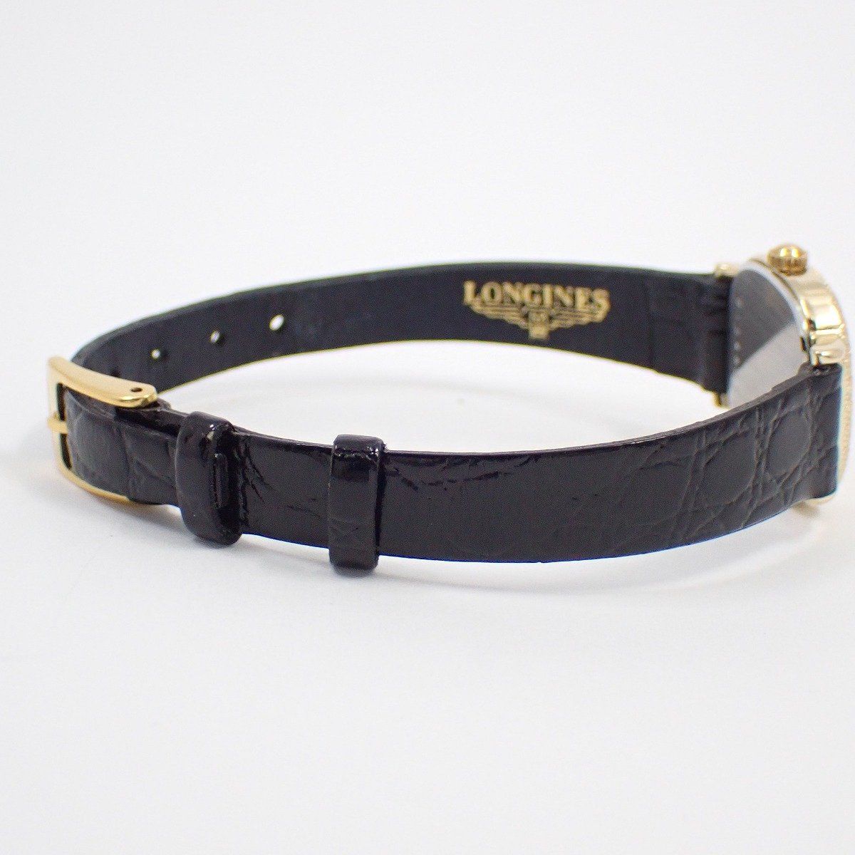 ロンジン スクエア型 クォーツ レディース 腕時計 ゴールドGP 2針 革ベルト