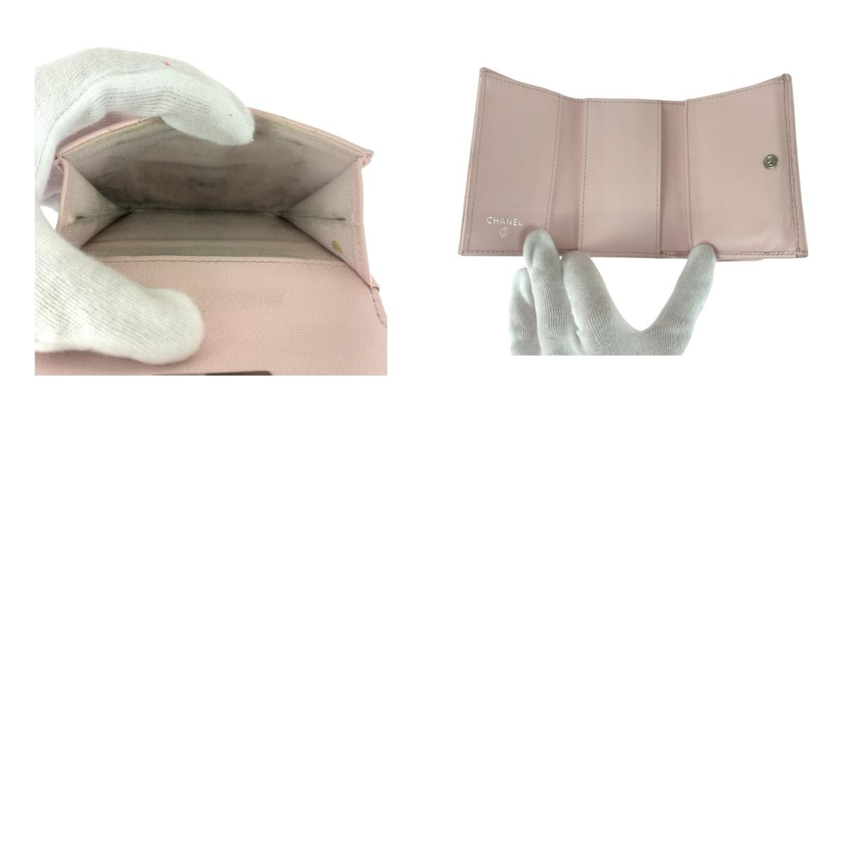CHANEL シャネル マトラッセ ココマーク ピンク シルバー金具 レザー 折財布 コンパクトウォレット レディース 505459