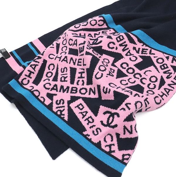シャネル CHANEL カシミアリバーシブルマフラー ネイビー×ピンク 17199