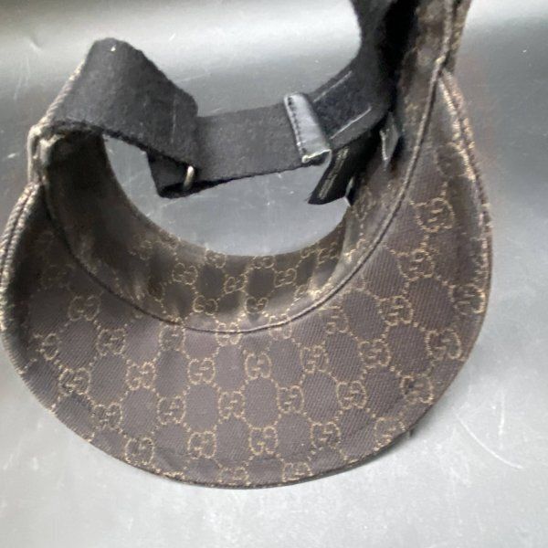 F 395 GUCCI グッチ サンバイザー GGキャンバス シェリーライン サイズS 帽子 キャップ プレート イタリア製 ブラウン系