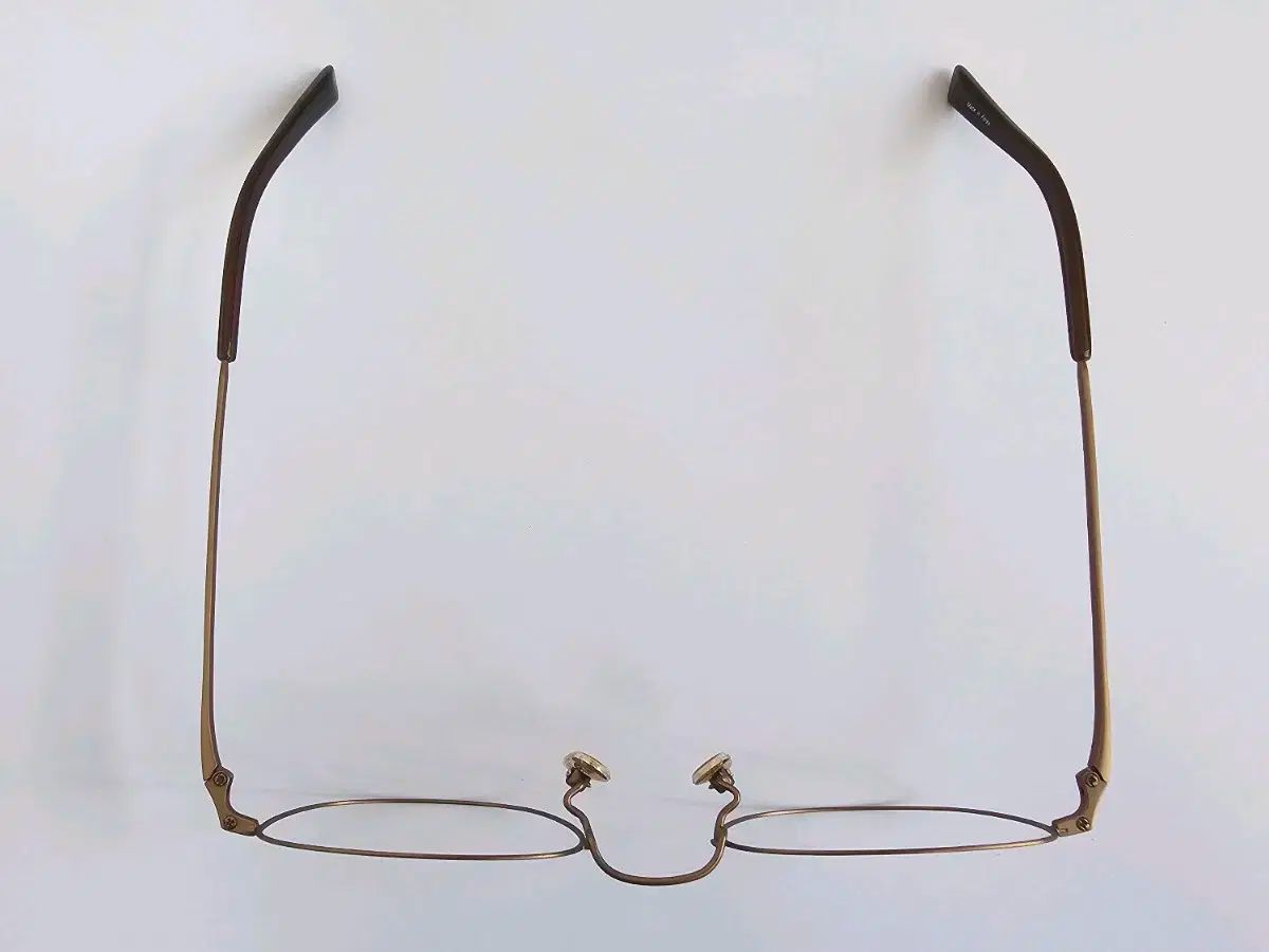 #ハッシュタグ GOLD チタン メガネフレーム H759-3です。全体的にGOLD カラーで、チタン 素材なので軽くて着用感も良いです。メガネのツル部分に凹みで刻印された繊細さが際立ちます。