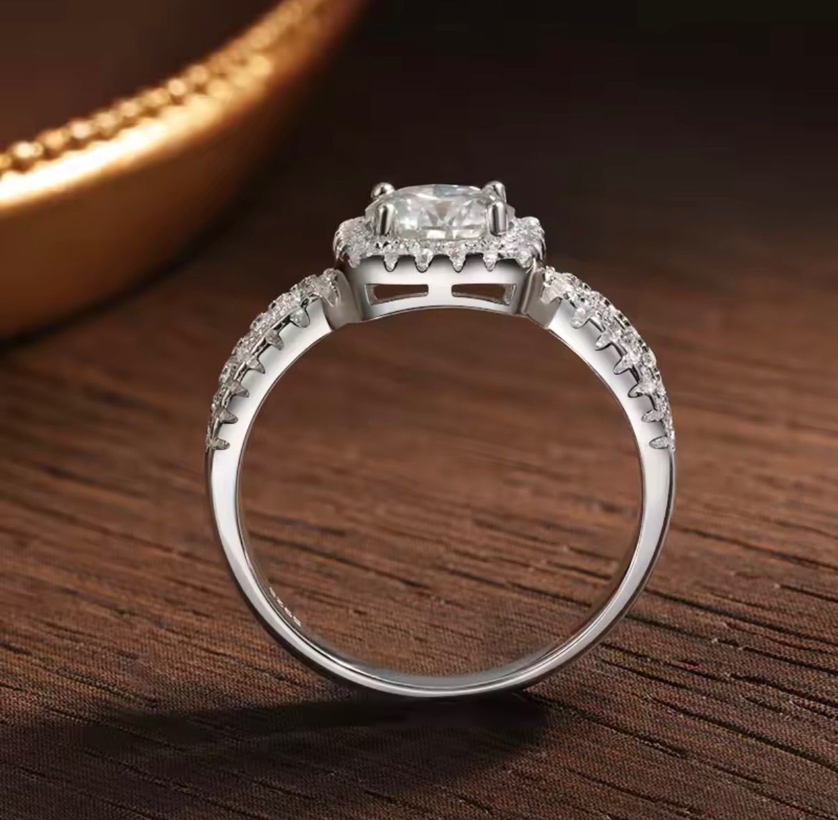 moissanite ring 1 carat / VVS1 / D color / halo ring / sterling silver S925 / white gold plated / platinum plated / excellent cut / bridal engagement alternative / promise ring / anniversary gift / luxury jewelry / sparkle