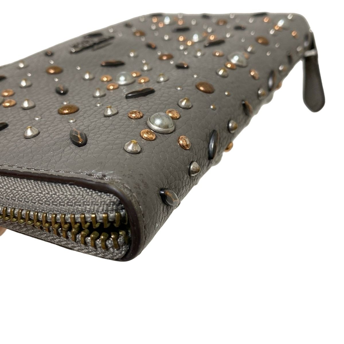 COACH コーチ 長財布 ナチュラル ペブル レザー スタッズ アコーディオン ジップ ウォレット 24411 ダークグレー