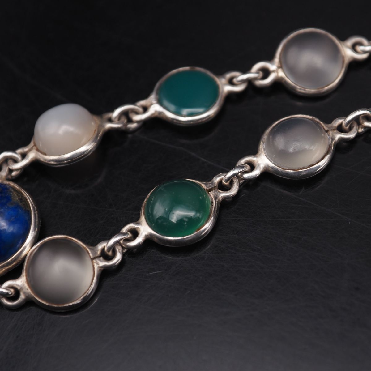H 456 ラピスラズリ グリーンアゲート 緑瑪瑙 メノウ 925刻印 ブレスレット デザイン シルバー ヴィンテージ 誕生石