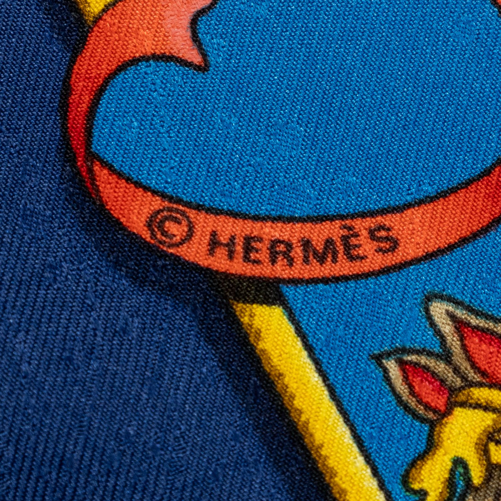 HERMES エルメススカーフネイビー ゴールド レッド ジャカードシルクA
