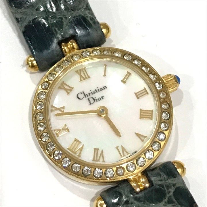 Christian Dior ディオール シェル文字盤 腕時計 ウォッチ ラウンド クォーツ QZ レディース アナログ 2針 レザー ベルト a 10335