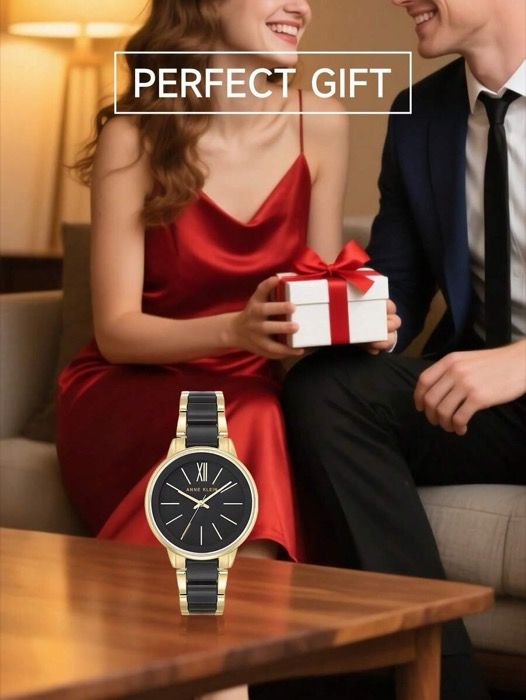 腕時計 レディース クォーツ 女性用レジンブレスレットウォッチ 艶やかな黒文字盤 レディースゴールドトーンラウンドウォッチ 調節 なレジンブレスレット付き女性用