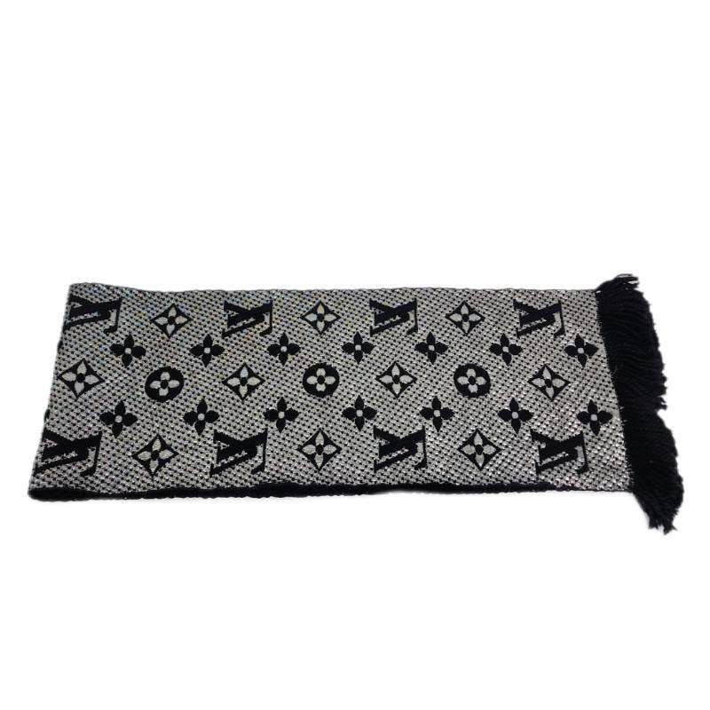 LOUIS VUITTON ルイヴィトン エシャルプ ロゴマニア シャイン M 75833 ブラック ウール シルク マフラー レディース