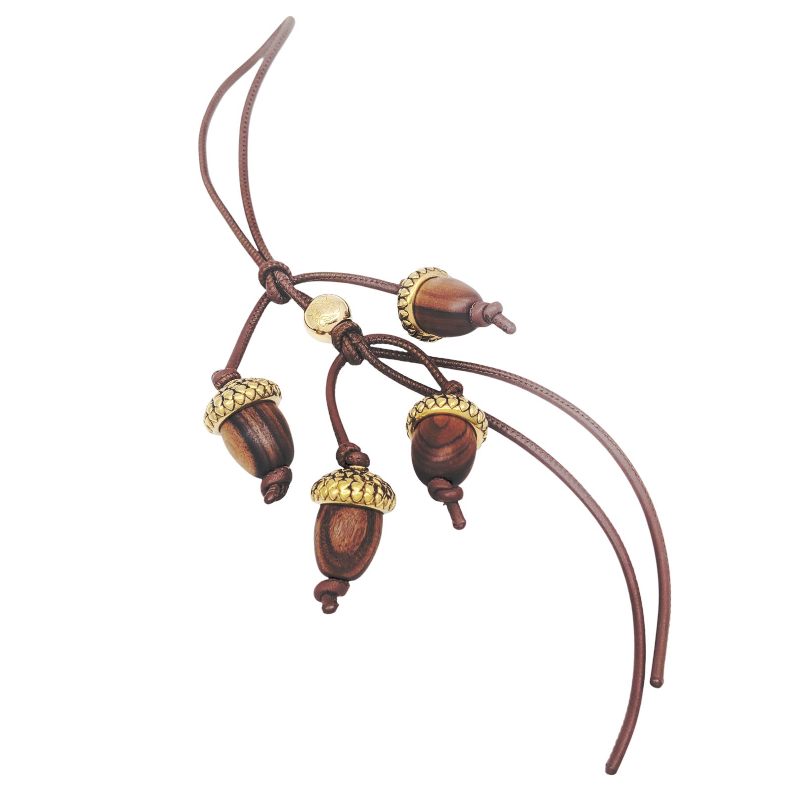LOEWE ロエベ エイコーンチャーム ウッド 真鍮 カーフスキン バッグチャーム ゴールド ブラウン レディース メンズ ブランドギャラリー