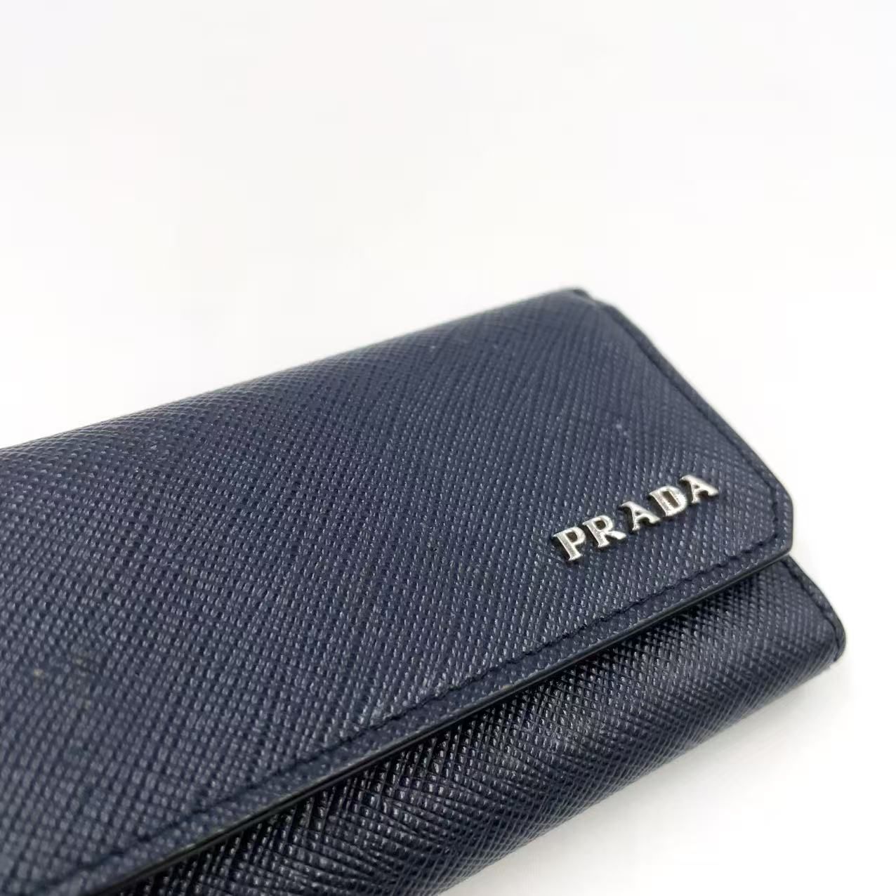PRADA エンボスロゴ サフィアーノ レザー ブラック キーケース シルバー