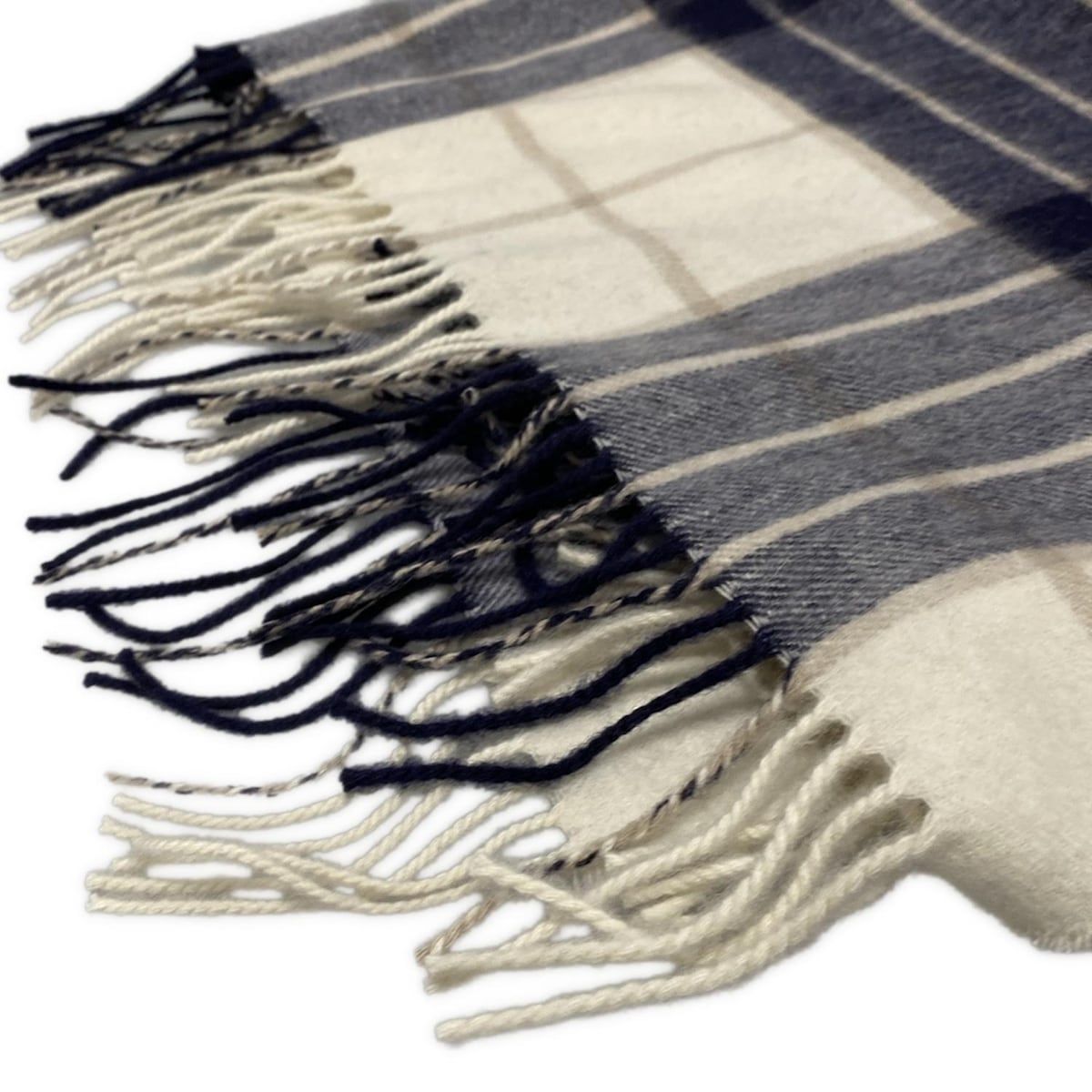 johnstons of elgin ジョンストンズ ストール ショール - 白×ダークネイビー×ベージュ チェック柄 カシミヤ