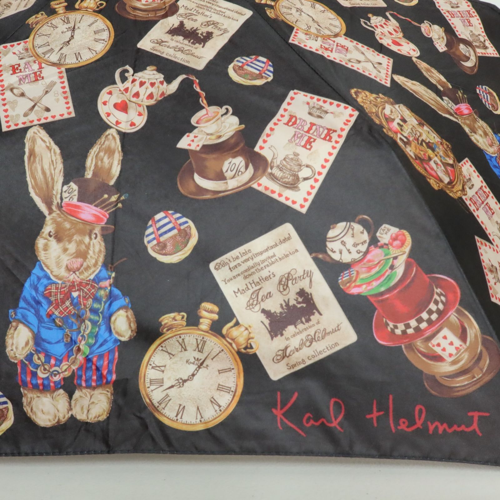ピンクハウス うさぎとカード ティータイム 不思議の国のアリス柄 折りたたみ傘 黒系 k3737
