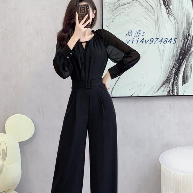 パーティードレス かっこいいパンツドレス 結婚式 お呼ばれドレス パンツ 袖あり 長袖 オールインワン ジャンプスーツ ワイドパンツ ハイウエスト 無地 シンプル 黒 パンツドレス かっこいい 大きいサイズ パーティードレス 韓国 体型カバー