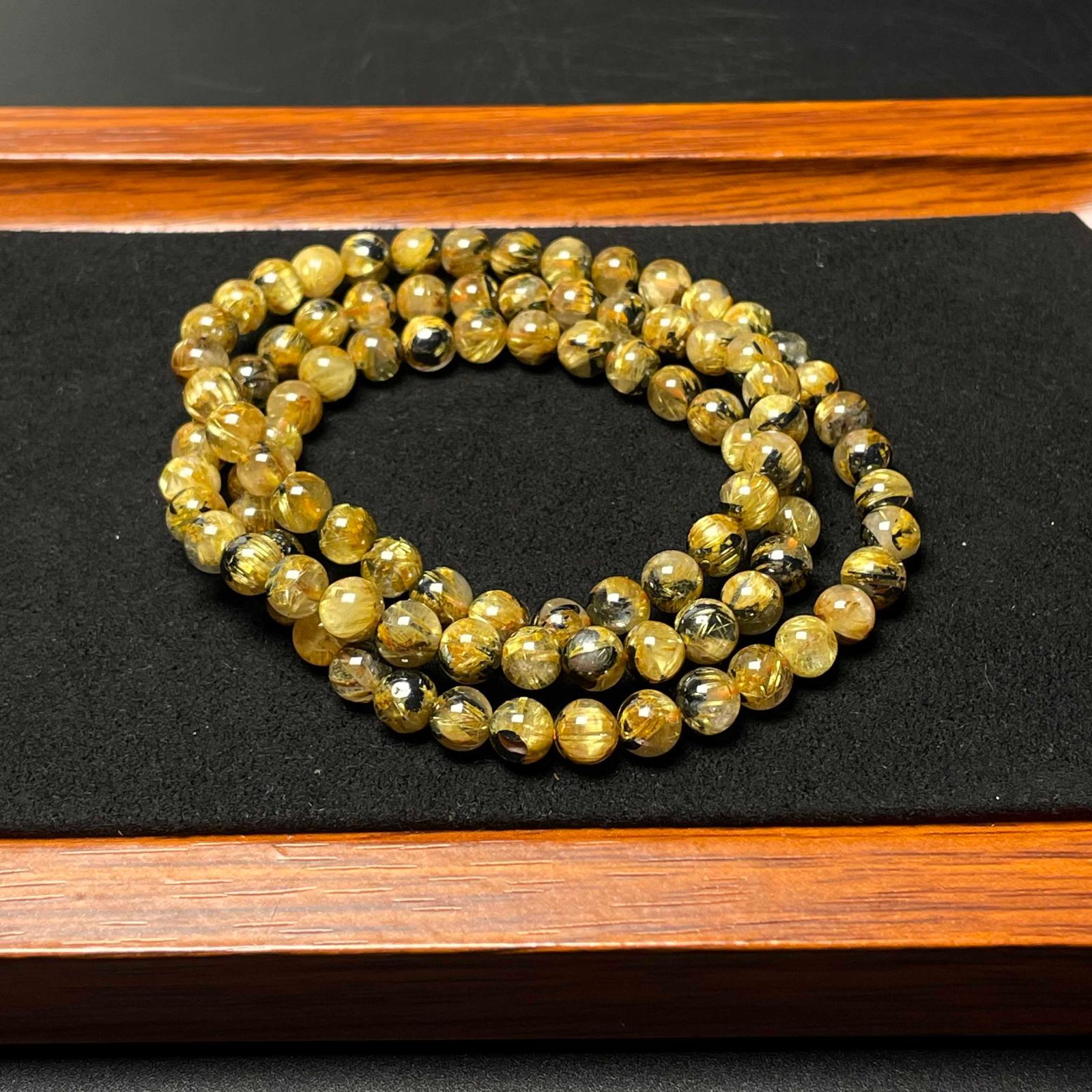 絶賛 EU製 太陽花タイチンルチル 黄金針水晶 金運 開運 ゴールド 3本巻きブレス パワーストーン プレゼント 5.9-6.3 mm ZB 9588