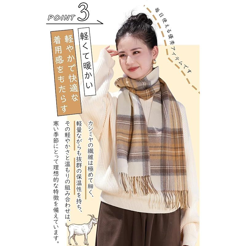 Utukky カシミヤマフラー レディース カシミヤ100% チェック柄 カシミヤストール 内モンゴル産 カシミヤ スカーフ 大判 厚手マフラー 冬 防寒 ふんわり 結婚式 プレゼント 贈り物 男女兼用