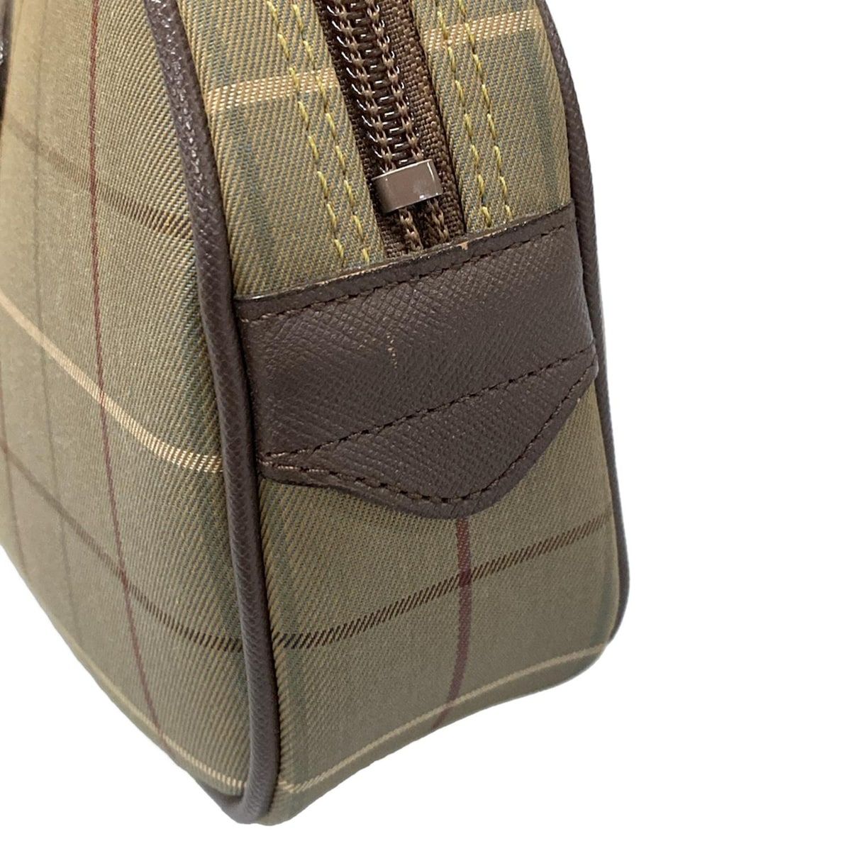 Burberry s バーバリーズ ポーチ カーキ×ブラウン×マルチ チェック柄 レザー