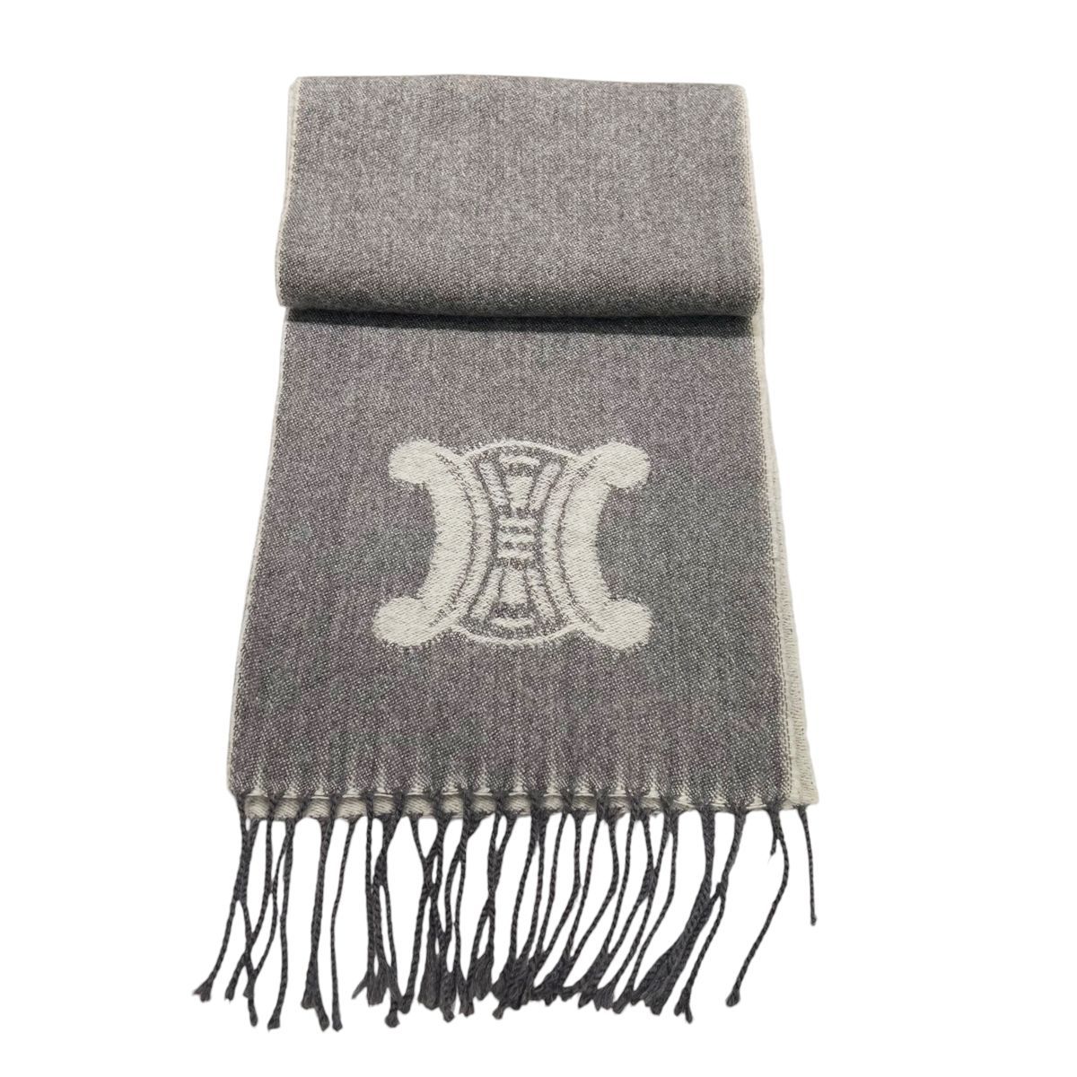 CELINE セリーヌ マカダム ロゴ カシミア マフラー グレー GRY トリオンフ ウール ストール レディース HO