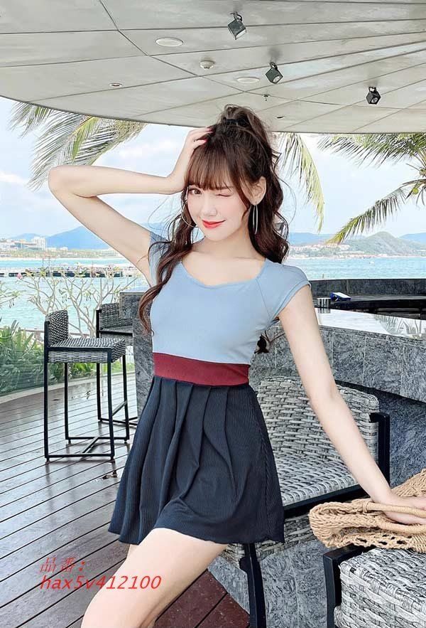 ワンピース水着 リボン 服みたいな 水着 切り替え 半袖 ワイヤーなし シンプル パッド付 セクシー レディース hax 5 v 412100