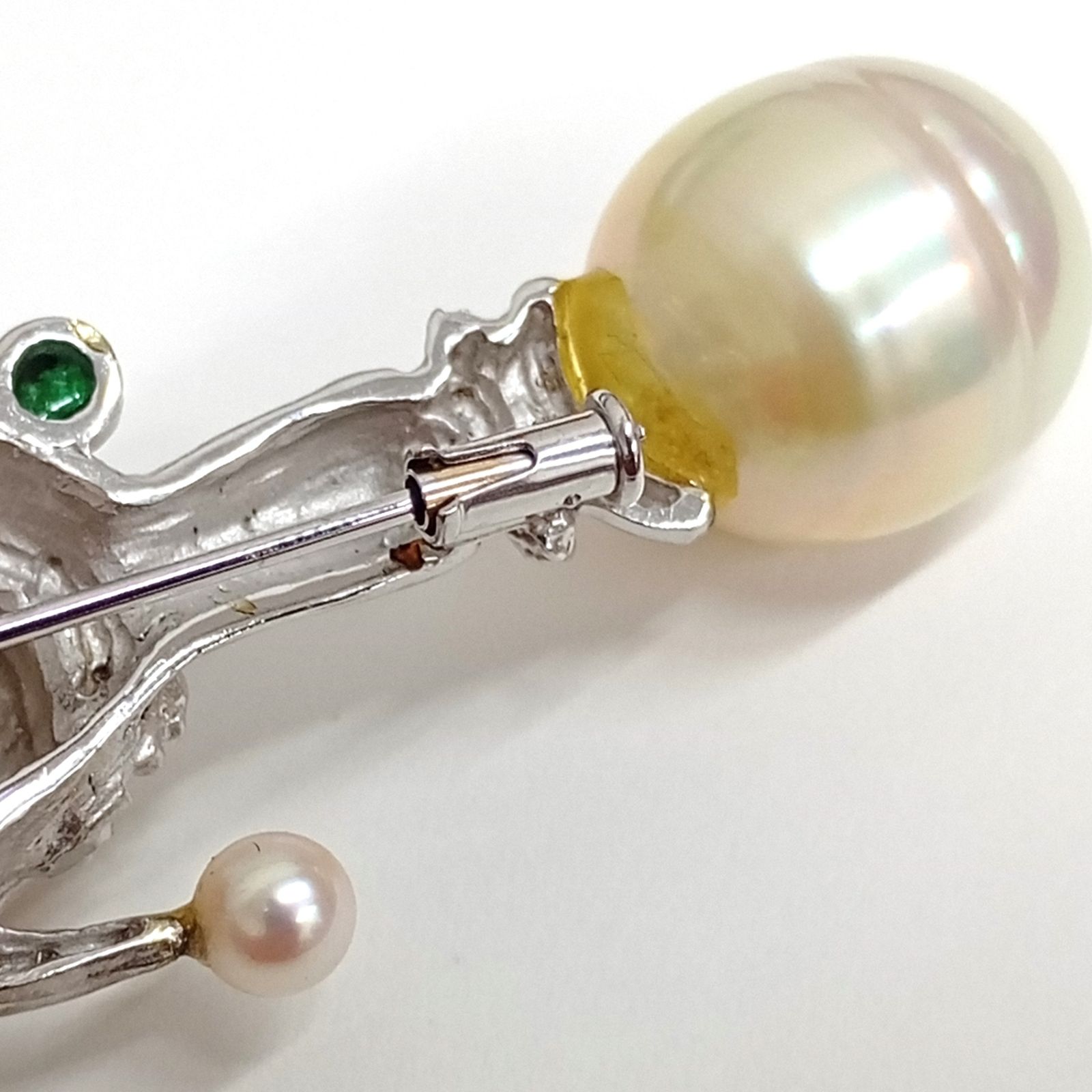 K 18 WG メレD 0.1 ct エメラルド0.11 パールct不明 ブローチ トップ 24.47 g バロックパール デザイナーズ ジュエリー JA-25057
