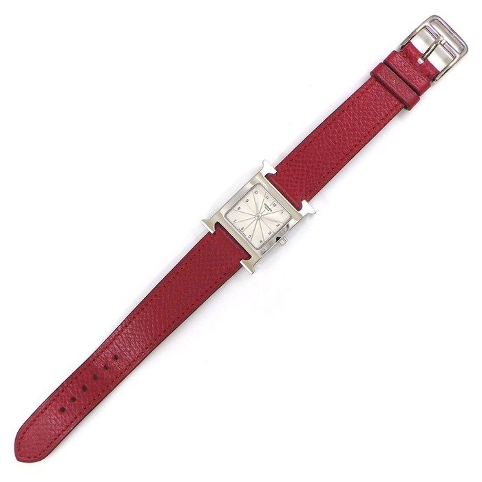 エルメス HERMES 腕時計 Hウォッチ HH 1.210 スクエア ホワイトギョーシェ文字盤 レッド 革ベルト SS クオーツアナログ